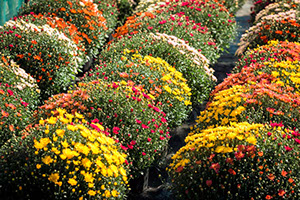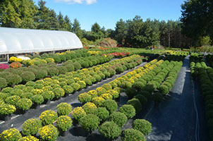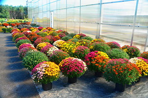 We grow several thousand plants for both retail and the wholesale market. Mums are grown as a season extender of colour, as they tolerate frost. They are not a true perennial, however they do have the ability to overwinter from one season to another. Our Mums are offered in solid colors in 4 pot sizes as well as the tri-colour combination that we are well known for.