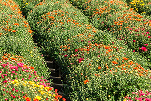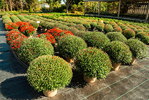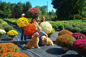 We grow several thousand plants for both retail and the wholesale market. Mums are grown as a season extender of colour, as they tolerate frost. They are not a true perennial, however they do have the ability to overwinter from one season to another. Our Mums are offered in solid colors in 4 pot sizes as well as the tri-colour combination that we are well known for.